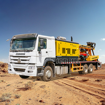 CSD400A 6 x 4 SINOTRUK HOWO caminhão montado para perfuração de poços de água é muito flexível em estradas difíceis e pode ser amplamente utilizado em muitos campos, tais como a exploração de recursos de poços de hidrologia,Metano de carvão, camada rasa de gás de xisto, calor terrestre, etc., e também pode ser utilizado para a exploração de gás de minas de carvão ou trabalhos de salvamento.